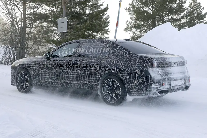 從外觀上看,BMW 7 Series小改款的偽裝車包的密不通風,很難看出的所以然。從大燈的位置來看,主要照明的燈具位置偏下,推測小改款車型應該是延續現行款分離式頭燈的設計。從輪廓來看,「齊天大腎」水箱護罩沿用的機會相當大,但下方多了橫柵修飾,看起來明顯小了許多,外型更有Neue Klasse設計語彙的感覺。車尾採雙邊雙出排氣尾管設計,這輛偽裝車應該是車系的頂規車款BMW M760e xDrive。