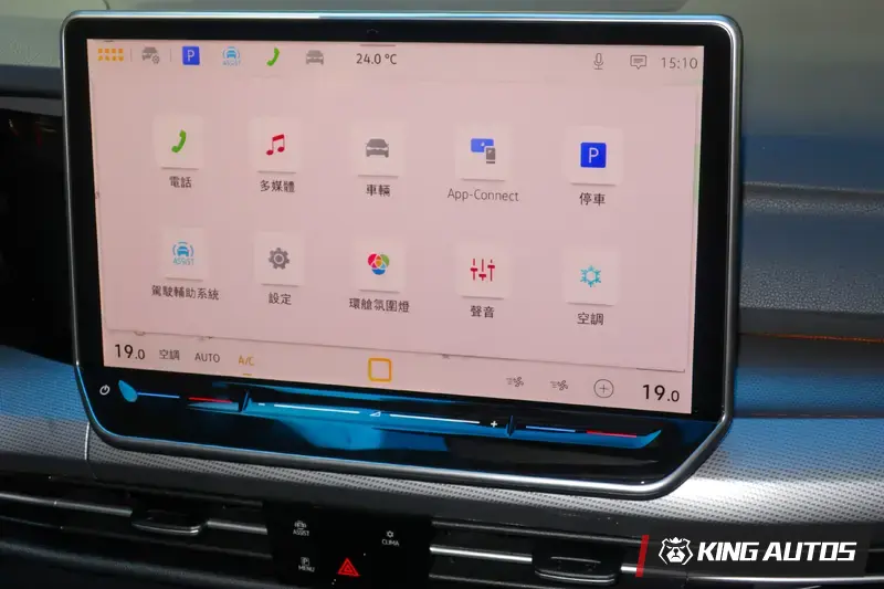 其實,判斷Golf小改款與否最快的方式是中控螢幕。小改款後新增的12.9吋中控螢幕體積滿大的,在車外就能看到中控台上突出一塊。機車系統升級品牌最新的第四代MIB模組化資訊娛樂系統(簡稱MIB4)。中控螢幕採用亮面面板,資訊顯示相當清晰,畫面切換十分順暢。螢幕中的功能標示隨著螢幕尺寸增加而變得更大,中控螢幕也稍稍往駕駛座傾斜,操作起來更為方便。若不想(或不能)動手也沒關係,首次導入專為台灣市場設計的語音聲控功能相當好用,能聽懂多數口語化的句子,讓調整空調、設定原廠導航,以及音響聲量等變得更加便捷。