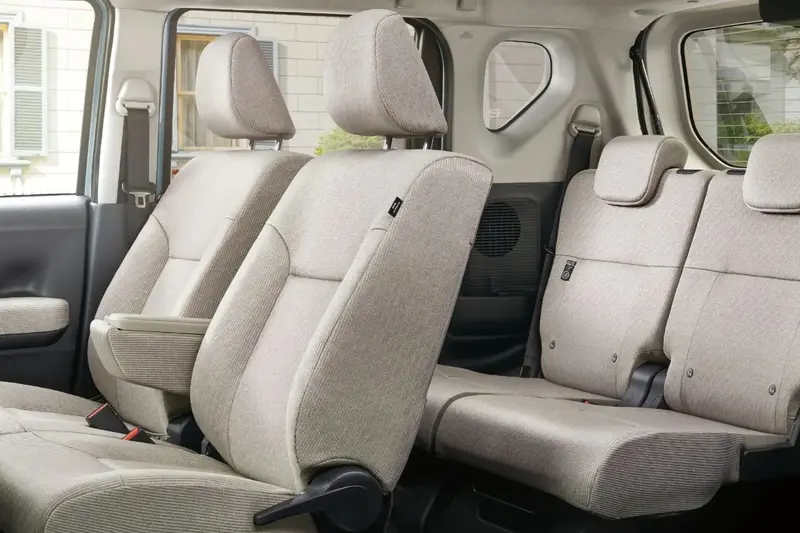 車內佈局方面,儀錶板採用微型車特有的簡潔介面,並降低音響系統的位置,確保駕駛時視野開闊,打造清晰乾淨的視野。座椅以優雅沉穩的色彩和材質,彰顯「量身訂製」的品質,營造出舒適的氛圍。車門扶手採用與座椅相同的色彩和材質,不僅營造出整體的統一感,也減輕了手臂的負擔。車系中定位較高的RS和G車款,內庄採用海軍藍色內飾搭配銀色縫線、銀色油漆和鍍層裝飾,營造出更具吸引力的高品質空間。