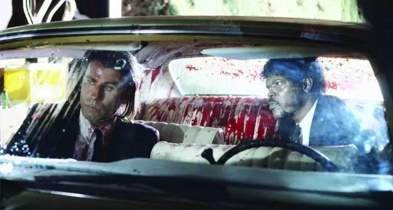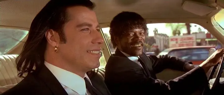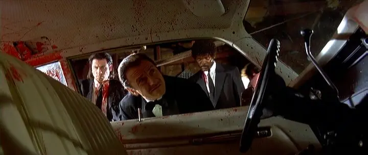在昆汀・塔倫提諾的經典電影 《黑色追緝令 Pulp Fiction》 中,有一幕堪稱影史最荒謬又令人難忘的黑色幽默場景。由 John Travolta 飾演的文森(Vincent Vega)和 Samuel L. Jackson 飾演的朱爾斯(Jules Winnfield),在完成「審問任務」後,帶著同夥 Marvin 搭車離開。途中文森手中握著手槍,卻在交談時意外走火,當場把 Marvin 爆頭,鮮血與腦漿噴得滿車都是。
