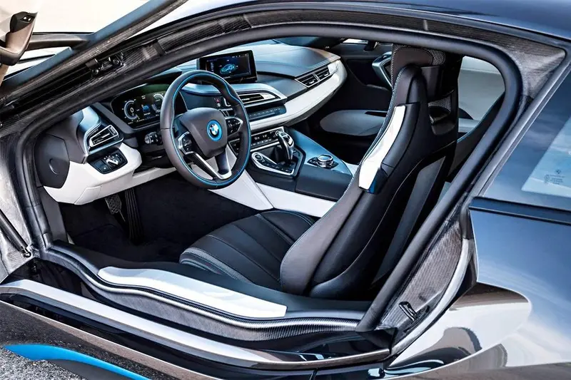 作為插電式混合動力車型,i8 也能純電行駛,電池滿電時可在市區行駛約 30 公里,這在當年堪稱劃時代的配置。再加上經典的剪刀門設計與低趴流線車身,讓 i8 不僅是一輛跑車,更像是從未來穿越到現實的象徵。