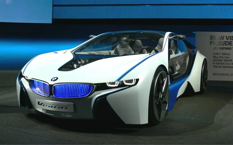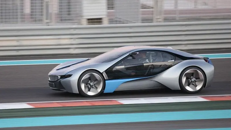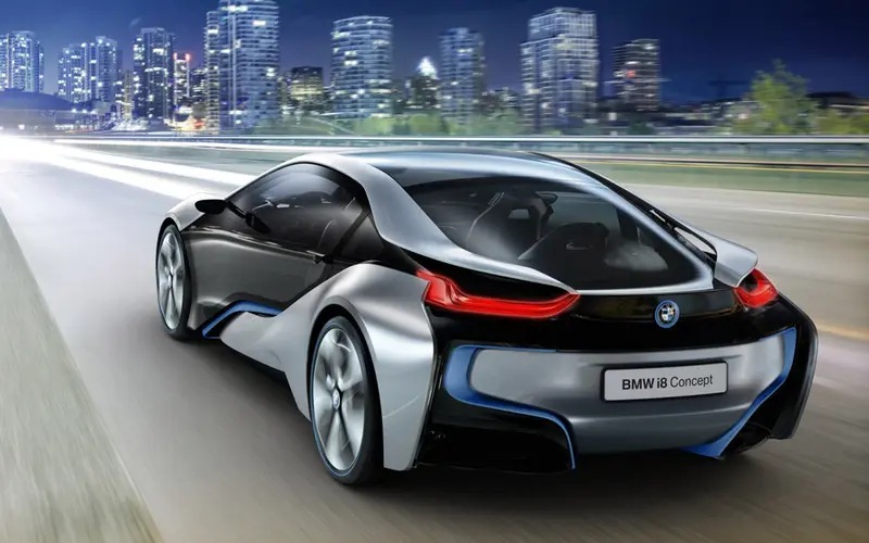 BMW i8 是一款插電式混合動力超跑,設計概念來自 Vision EfficientDynamics 概念車,量產後幾乎完整保留了前衛線條。車身大量使用碳纖維強化塑膠(CFRP),因此重量控制得相當出色。它的動力系統由 1.5 升三缸渦輪增壓引擎搭配前軸電動馬達組成,綜效輸出達到 362 匹馬力(後期版本提升到 369 匹),0–100 km/h 加速僅需 4.4 秒,最高時速電子限速 250 km/h。