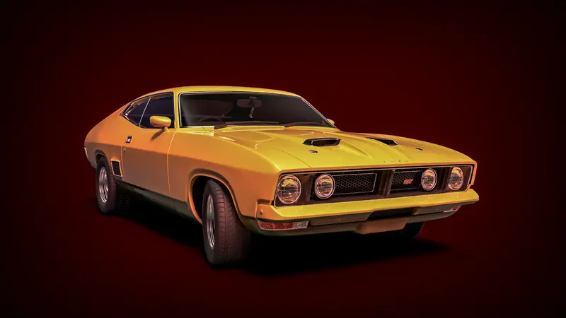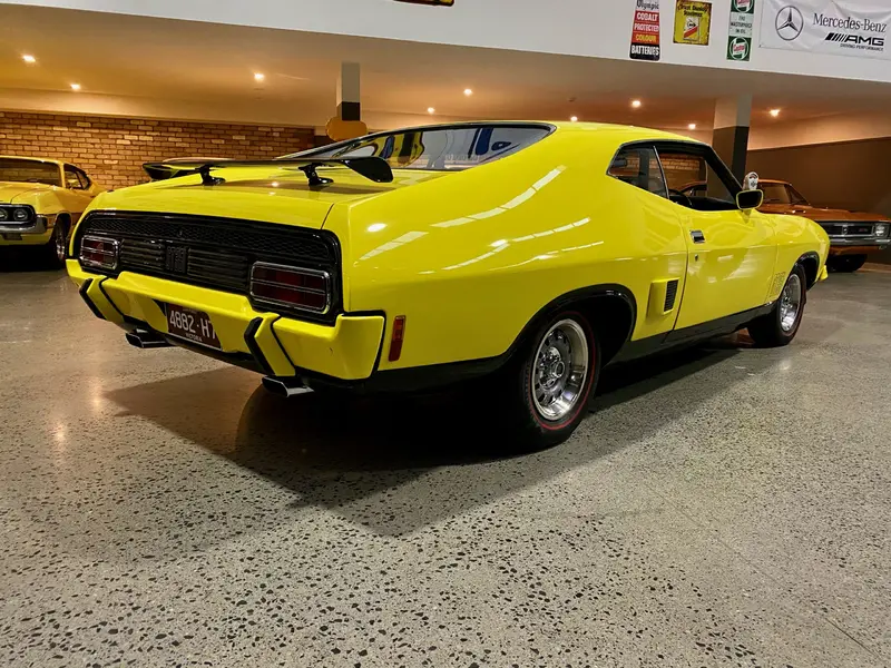 這款車是當年澳洲福特針對性能市場推出的旗艦肌肉車,外觀線條與美國的 Mustang Mach 1 有幾分相似。原廠搭載一具 5.8 升 V8「Cleveland 351」引擎,最大馬力大約落在 250 到 300 匹之間,對七〇年代的澳洲而言,已經是相當狂暴的輸出。傳動系統則提供四速手排或三速自排,並採用後輪驅動。這樣的規格,放在當年就是街頭最受矚目的高性能車款。