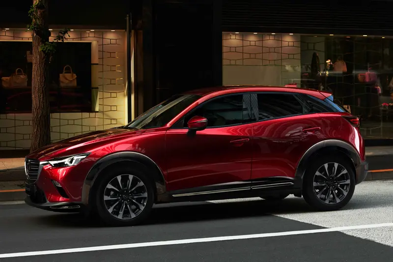 Mazda 旗下日系美型休旅 Mazda CX-3,全新推出 2026 年式 20S Signature 車型,延續魂動美學簡約語彙,流線車身勾勒俐落姿態,結合具自動水平調整的 LED 頭燈輔以亮銀色前保桿與車側飾條,營造洗鍊精緻的視覺風格。曜黑環車護板以層次分明的深邃對比,襯托立體且具張力的美學氣韻,搭配 18 吋雙色鋁合金輪圈,在光影流轉間綻放鮮明動態節奏,為整體外觀注入活力與自信的運動氣息。