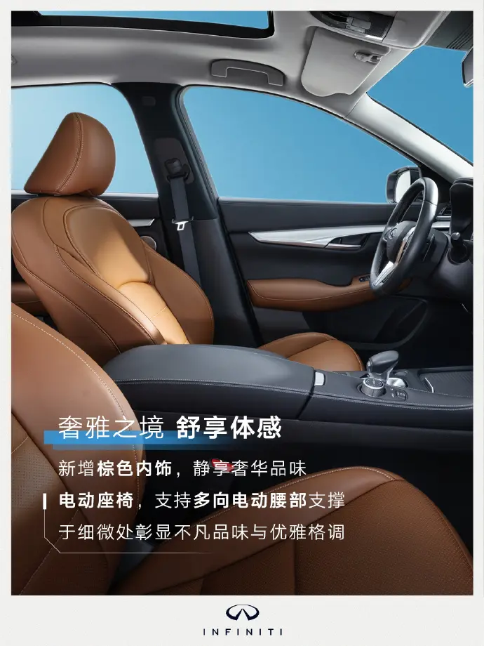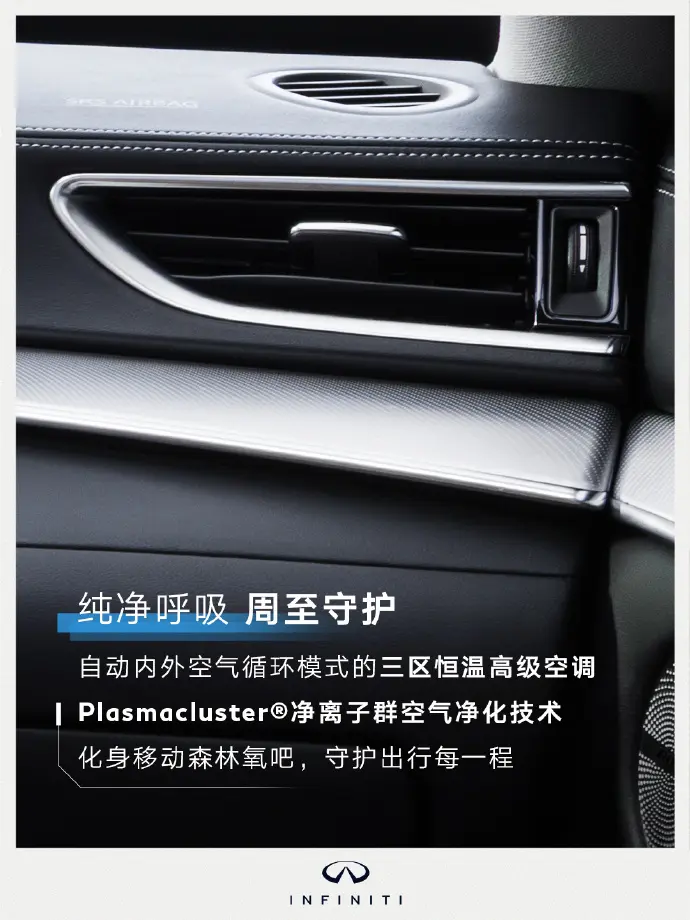 動力編成沒做改變,繼續搭載VC-Turbo可變壓縮比引擎,以8:1~14:1的可變壓縮比設計,流暢展現268hp最大馬力與38.7kgm最大扭力,透過Infiniti精心調校的動力輸出曲線,提供駕馭快感與舒適乘坐間的絕佳平衡。此外,配備主動式電子引擎抗震阻尼器,當偵測到引擎產生晃動前,馬達預先產生反作用力抑制,有效降低引擎的振動與噪音,大幅提升行車舒適性,使QX50同時擁有澎湃動力與運轉靜謐的極致優勢。