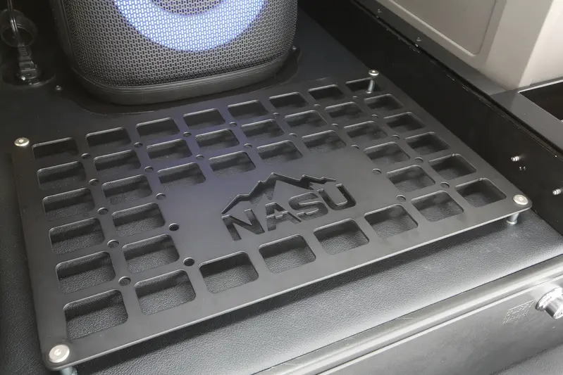 外觀與配件的升級讓Nasu Edition 更進一步展現了其探險精神。獨一無二的車身套件搭配改良的引擎蓋進氣口,賦予了 Nasu Edition 更具侵略性和硬朗感的外觀。醒目的紫色訂製外包裝呼應了日文「nasu」的另一個意義——「茄子」。載物籃以及經過改裝的鉸接式車頂行李架等越野配備,為冒險之旅做好了準備。在載物區,客製化的抽屜系統和滑動托盤上的冷藏櫃為長途旅行提供了井然有序的儲物空間和便利性。