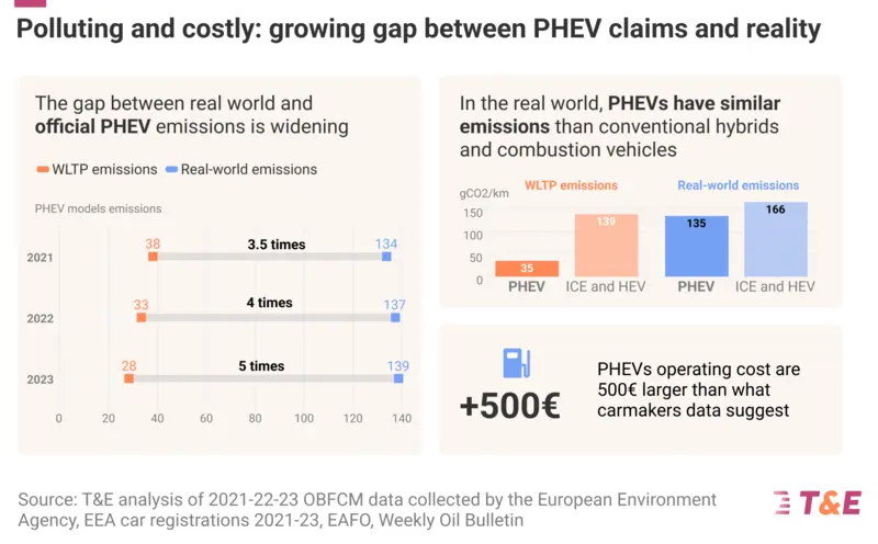 同時具備電動車與油車優勢的PHEV動力,可無碳排放的純電行駛又不用被充電站綁住,長途時又有引擎可以驅動車輛,被外界視為油車轉型電動車的最佳選擇,被吹捧為駕駛樂趣、經濟實惠且環保。然而,非政府組織的歐洲環境聯合會transport environment(以下簡稱T&E)最新研究結果戳破PHEV的綠色幻想泡泡,實際上它一點相當耗油,且碳排放也相當高。