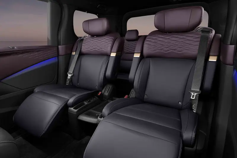 車內,座艙散發著私人休息室般的氛圍,第二排乘客將沉浸於零重力船長座椅的舒適之中。 TailorFit真皮和木紋裝飾,以及車門和座椅飾板上以久美子圖案為靈感的圖案,與同級首款集成式雙14.3寸顯示屏相得益彰,將駕駛信息和資訊娛樂功能融為一體,營造出奢華的氛圍。列為選配的Bose環繞音響(22隻揚聲器)和64色氛圍燈,進一步提升了感官體驗。