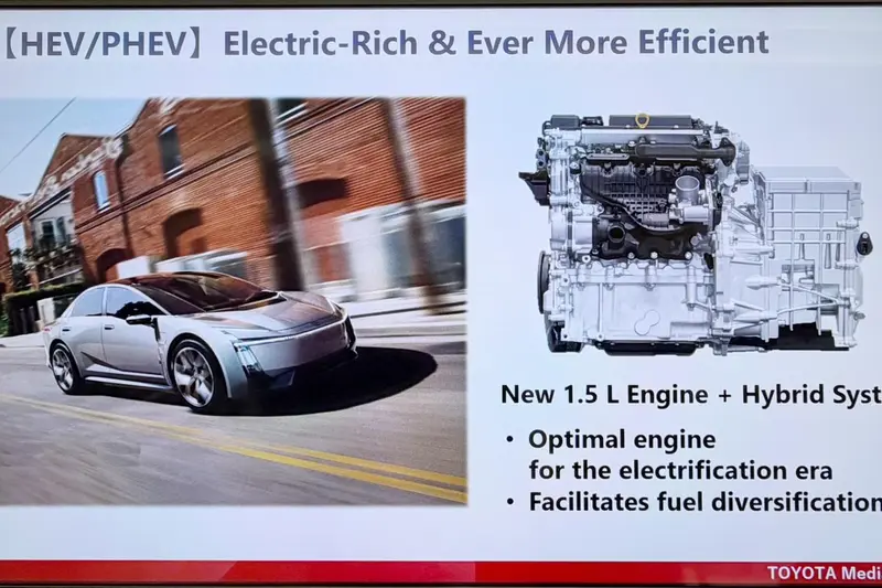 氫燃料電池離台灣比較遙遠,比較值得注意的是HEV及PHEV動力的引擎,官方預告新世代車款將搭載全新研發的1.5升四汽缸自然進氣引擎,體積比上一代更輕巧,重量也減輕約10%,且燃油效率更高。隨著引擎體積變小,引擎室可以設計得較低,讓車身更符合空氣力學,進而提高燃油效率。該引擎採用類阿特金森循環,輸出約95匹/12.2公斤米,匹配的電動馬達輸出約41匹馬力,綜效馬力約136匹。(編按,現行款Altis 1.8油電綜效馬力122匹)