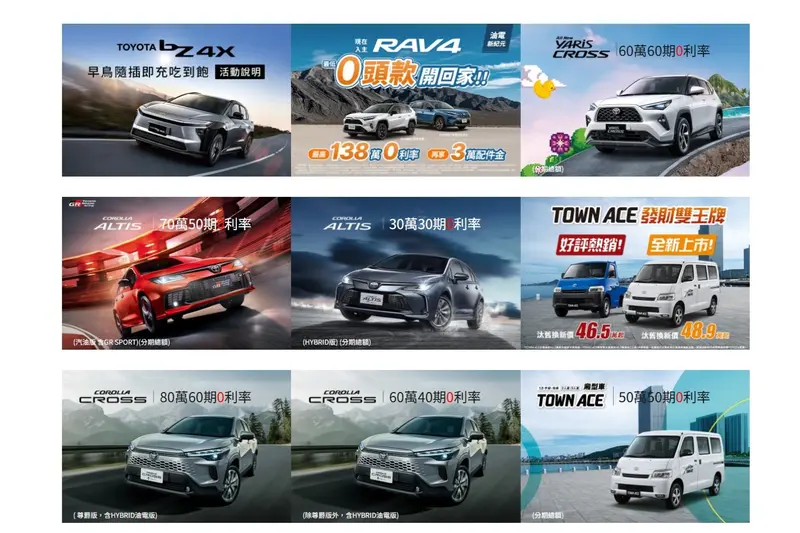 分期方面,COROLLA CROSS車系的尊爵版雙動力都享有80萬60期0利率(分期總額),其餘車款為60萬40期0利率(分期總額)。本月1.88%低利率方案,除了原本的CROWN外,另新增美式廂型車SIENNA,享有最高120萬24期。優惠活動詳洽各地經銷商,以和泰汽車公布為準。