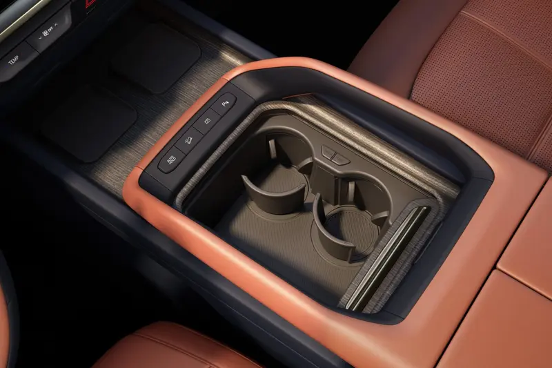 中控台下方柔和的燈光營造出寧靜的氛圍,進一步提升了車廂的豪華感。後座乘客扶手可轉換為實用的小桌板,而第一排和第二排可選裝的網狀頭枕則兼具現代感和日常舒適性。實用性也得到了重新定義,可重新配置的行李廂配備帶有集成刻度的折疊式行李桌和可拆卸隔板,巧妙地將戶外探險與功能性完美融合。