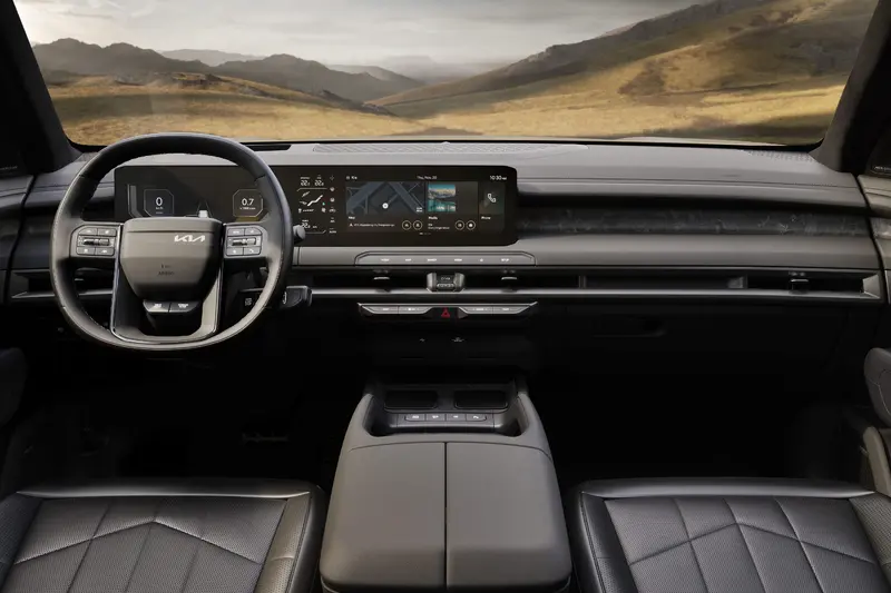 全新Telluride的車廂設計將設計昇華為體驗。其靈感源自於一片無垠的世外桃源,在這裡,都會生活與自然世界交融,車廂營造出既開闊又私密的氛圍,讓乘客倍感舒適愜意。寬闊的水平佈局營造出一種宏偉感,而大膽的環繞式設計則帶來一種圍合感。金屬飾件強調了精準度和寬度,而堅固的把手則彰顯了其堅固耐用的品質。