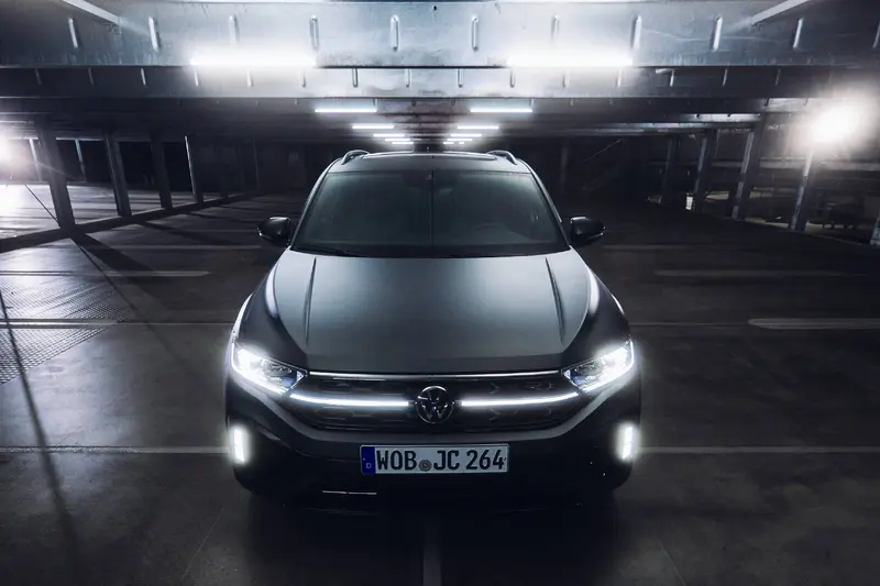 T-Roc R極緻版設計俐落簡潔,銳利折線與R 專屬外觀 / Black Style 黑化套件刻劃氣勢萬鈞的戰鬥姿態,車頭具R 專屬運動化前保桿,以水箱護罩連貫式 LED 定位燈連結兩側IQ.LIGHT 智慧燈組:LED Matrix 矩陣式頭燈和 DLA 動態頭燈自動切換,前方與側邊綴上辨識度極高的R 徽飾及R專屬銘牌,自黑化風格後視鏡罩、湛黑車頂行李架,至黑化風格窗框、後方深色隱私玻璃與碳纖維風格 C 柱設計,無處不以細節展現強烈張力和卓越質感,流線輪廓延伸至車尾斜背造型與LED高亮度燻黑尾燈(附動態轉向指示燈),由運動化雙邊四出排氣尾管及黑化風格排氣飾框勾勒出霸氣背影,此次新增R 極緻版專屬套件更是如虎添翼,純粹而具未來感的「金屬流光銀」車色,搭配專屬 19 吋 Pretoria 鋁合金輪圈,外觀簡約洗鍊卻蘊藏強勁動能的反差魅力讓人愛不釋手,輕鬆悠遊於日常都會和帥氣跑格之間。而由台灣福斯汽車初次在台獻上的Volkswagen R部門限定色,嶄新「霧影消光灰」車色套件,沉穩大器的身姿低調而高貴,佐以黑色車門把手畫龍點睛,流露與生俱來無法掩蓋的剛烈鋒芒,展現非凡個人品味同時強化運動操駕體驗。