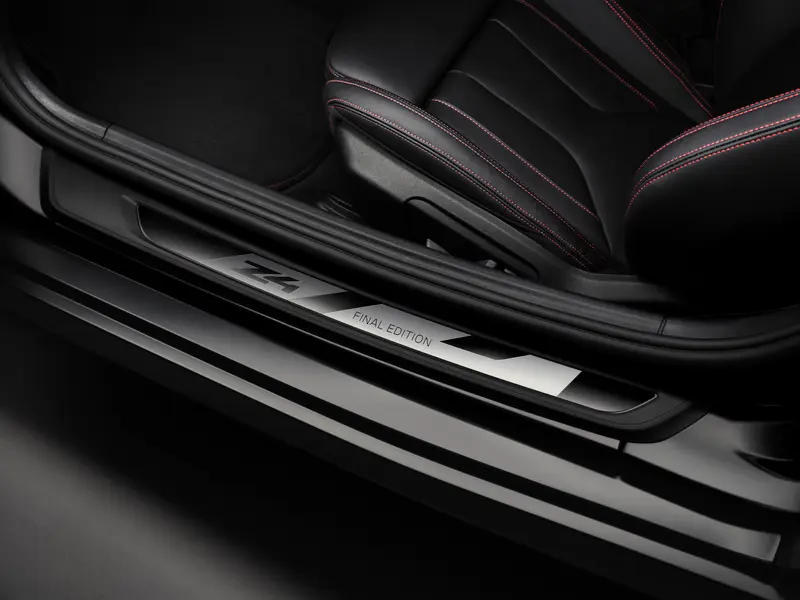 車內佈局方面。儀表板、中控台、腳踏墊、門板和M運動座椅均採用紅色對比縫線,座椅則以黑色Vernasca真皮和Alcantara布料包覆。獨特的迎賓踏板也隨時提醒您,您駕駛的是Z4 Final Edition。此外,駕駛輔助套件、 Harmon Kardon音響系統和氣氛燈、抬頭顯示器等也都列為標準配備。
