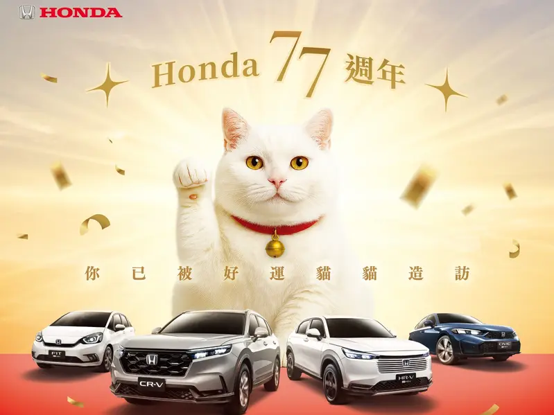 歡慶Honda誕生77週年,Honda Taiwan推出年終超值豪禮,即日起限時入主Honda全車系,享「OVO便攜式智慧投影機*1」或「黑翼特仕版與5年延長保固*1」二擇一豪禮,指定車款優惠總價值最高達20萬元。活動期間至全國Honda Cars試乘全車系,即可參加「好運一番賞」活動贈送的「Honda 77週年限定紀念禮」(7抽1)、週週再抽「VIVE EAGLE AI眼鏡」讓您帶回家。歡迎即刻至官網預約試乘或親臨全台展示中心,感受Honda的人車一體操控性能,重新定義您對駕馭樂趣的想像。