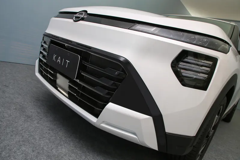 全新 Kait 的設計體現Nissan使用大膽線條展現動感車身姿態的設計理念,並輔以先進技術提升駕駛體驗,以及兼具功能性和情感性的設計美學。車頭採用分離式頭燈,狹長的全LED大燈在上方,下方則有著三條線樣式的日行燈,引擎蓋邊緣明顯的折線勾勒出「肩部」輪廓,前方進氣口的設計進一步強化其硬朗的外觀。後廂容積432公升。