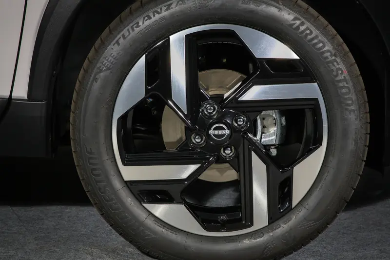 車尾部分,車型銘版位於後廂蓋中央,介於後窗末端和後保險桿之間。 LED尾燈延伸至後廂蓋,並由一條鋼琴烤漆飾條連接,共同打造出引人注目的視覺效果。醒目的尾門設計致敬了品牌經典休旅車Patrol,特別是那凸起式車尾設計是該車型的特色。因此,從概念上講,它展現品牌的DNA以及Nissan在休旅車研發方面的傳統。 全車系標配17吋鋁圈,高階車款的樣式不同,落地胎尺碼統一為205/55 R17。