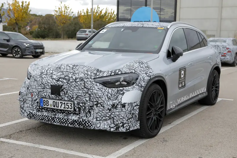現行款純電休旅車Mercedes-Benz GLC electric於2025年德國慕尼黑車展發表,目前只提供單一GLC 400 4MATIC with EQ Technology車型,雙馬達四輪驅動,綜效馬力490匹,零百加速4.3秒,WLTP續航里程713公里。最快明年第一季發表的性能取向AMG車款首次曝光,正準備去紐北賽道進行最後的賽道測試,足下鋁圈與煞車碟盤的尺碼更大,後輪鼓也微微外擴,這些 都是標準AMG車款設定。