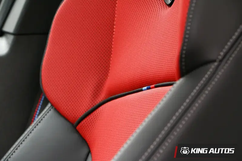 對於講求極簡生活的商務人士,只需攜帶 iPhone 即可解鎖發動,展現了科技帶來的優雅與從容。步入車內,映入眼簾的是由10.25吋虛擬數位儀錶與10.7吋中控觸控螢幕組成的懸浮式曲面螢幕,畫質相當細膩,資訊判讀容易。該車搭載最新的BMW Operating System 9車機系統,中控螢幕過場相當柔順,專屬的零層級介面讓資訊一目了然。車艙標配的M多功能方向盤、儀錶台與安全帶上專屬M三色縫線,搭配M鋁質菱格紋光影飾板,更顯濃烈運動氣息。前座跑車座椅使用Veganza皮革與Alcantara麂皮材質相互搭配,所帶來的身體支撐性與側向包覆都不亞於標準性能車。熱血駕馭時,座椅可以將身體牢牢穩住,更專注於車前路況,不因為車輛重心轉移而分散注意力。說道開車時的專注力,就不能不說一下AR擴增實境導航,它能將虛擬路徑指引直接投射在實景畫面上,大幅減輕駕駛的認知負擔。