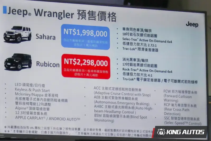 Jeep 15年後重返台灣 美國車關稅左右Wrangler售價 接單價199.8萬起