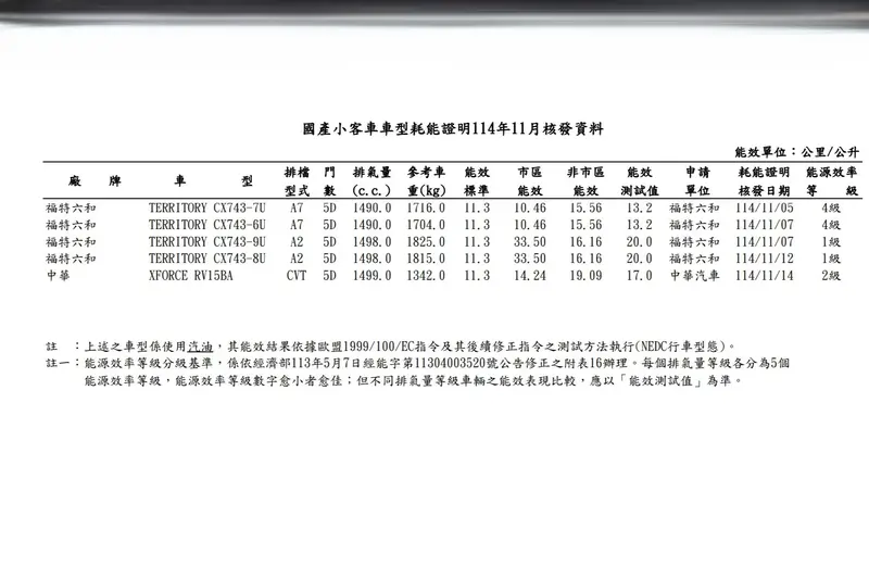 11月能源署油耗|Mitsubishi Xforce比Colt Plus省一點油 Ford Territory油車比Kuga省油