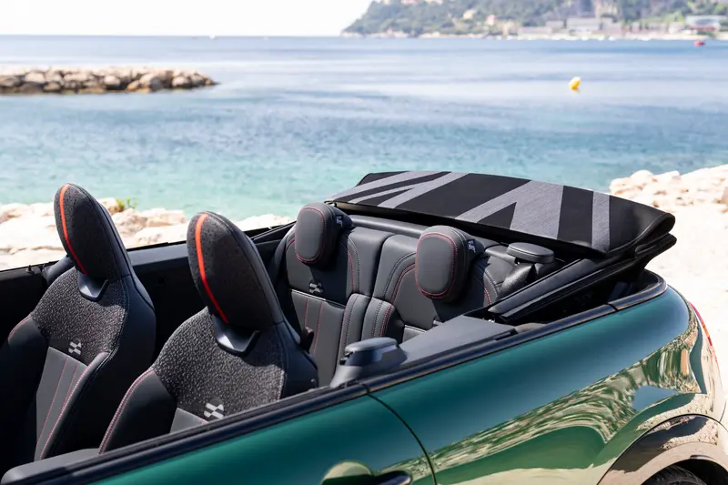 Mini John Cooper Works Convertible採軟頂敞篷設計,提供黑色和灰色米字旗圖案兩種選擇。它可在短短18秒內完全打開,且可在時速高達30km/h的情況下完成。此外,軟頂敞篷還可在任何速度下像天窗一樣打開40mm,為駕駛員和乘客提供額外的專屬敞篷駕駛體驗。只需幾個簡單的步驟,擋風玻璃即可有效減少不必要的空氣湍流和風噪,讓您隨時享受輕鬆愜意的敞篷駕駛樂趣。實用且有趣的「Always Open Timer」計時器功能,可透過駕駛艙內的OLED 顯示器顯示您敞篷駕駛的小時數。
