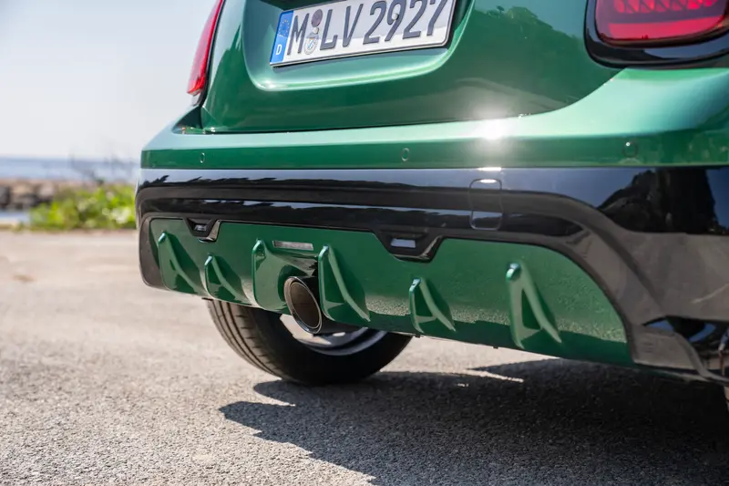 MINI John Cooper Works Convertible憑藉其引人注目的外觀,在當地熱門景點的繁華街道上格外引人注目。辣椒紅的進氣口和後視鏡罩為經典的英倫賽車綠色車漆增添了運動氣息。高光澤黑色的前格柵和側裙,以及帶有JCW標誌性水平日行車燈的MINI LED大燈,共同打造出純粹的運動風格。 MINI John Cooper Works Convertible獨有的後下擾流採用車身同色塗裝,延續了整體一致的設計。足下與三門掀背車相同,標配18吋JCW Lap Spoke雙色鋁圈配跑車胎,結合JCW專屬紅色運動化卡鉗,展現出其強烈的動感外觀。