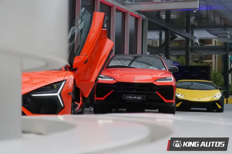 Lamborghini Urus SE。品牌首款混合動力 Super SUV,代表 Lamborghini 電能化策略於高性能 SUV 級距中的關鍵推進。Urus SE 將高性能混合動力架構導入量產 Super SUV 領域,拓展電能化布局至更廣泛的產品層級。同時採用全面更新的設計語彙與精密優化的空氣力學架構,並整合先進車載技術系統,動力系統搭載雙渦輪增壓 4.0 升 V8 引擎,結合高效電能動力模組,綜效輸出達 800 CV,0–100 km/h 加速 3.4 秒,極速可達 312 km/h。在維持頂尖性能水準的同時,Urus SE 相較前代車型實現高達 80% 的排放減量,展現 Lamborghini 在高性能工程與永續發展並行推進上的技術成果。