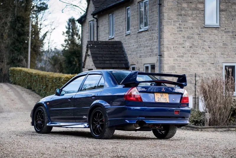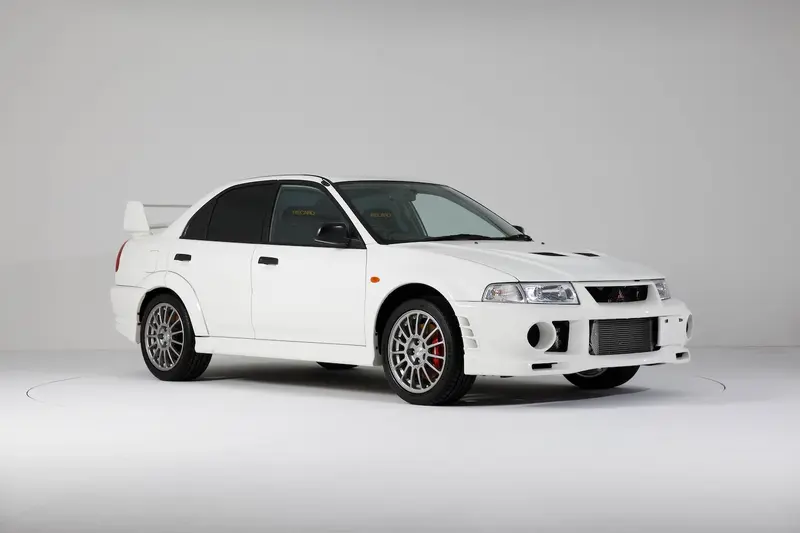 回到真實世界,Mitsubishi Lancer Evolution VI 於 1999 年推出,是為了參加 WRC 世界拉力錦標賽而進化的關鍵世代。這一代車型在外觀上最顯著的特徵,是為了提升高速穩定性與散熱效率而重新設計的前保桿與大型後尾翼,整體線條比前代更具侵略性,同時也更講求空氣力學表現。雖然它看似是一輛四門房車,但骨子裡仍是一部徹頭徹尾的賽車。