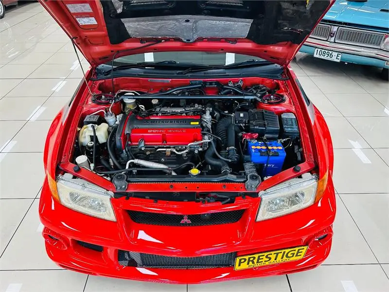 動力核心依舊是那具經典的 2.0 升直列四缸渦輪增壓 4G63 引擎,官方輸出受限於當時日本的「君子協定」為 280 匹馬力,但實際潛力遠不止於此。搭配五速手排變速箱、全時四輪驅動系統,以及三菱引以為傲的 AYC 主動式偏航控制差速器,Evo VI 在加速、出彎與高速穩定性方面展現出極高水準。這樣的設定,讓它在彎多路窄的拉力賽道上如魚得水,也造就了它極高的操控上限。