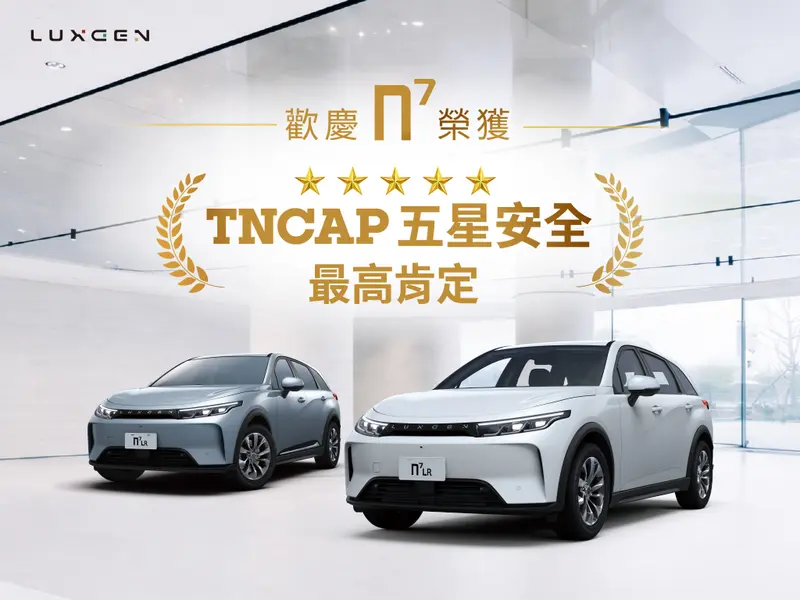 安全始終是 Luxgen 研發的重中之重。n7 近日於 TNCAP 2025 年第四季測試中,憑藉優異的主被動安全表現,榮獲最高等級的五顆星肯定。不僅證明了鴻華先進的研發實力與裕隆汽車的製造品質,更延續了 Luxgen 過去自主將 U5 送往歐洲 IDIADA 進行撞擊測試的安全精神。透過 TNCAP 的官方驗證,n7 再次確立了其作為台灣最安心、可靠純電選擇的市場地位。