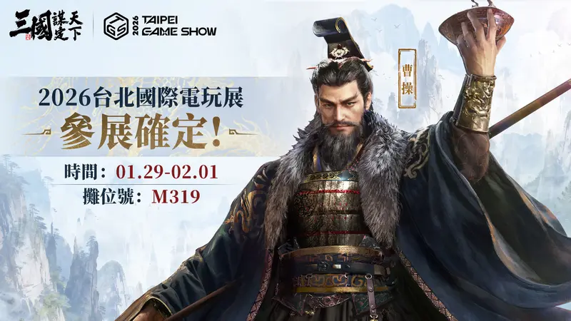 《三國:謀定天下》也於今日宣布,將參展2026年1月29日(四)~2 月1日(日)為期四天於台北南港展覽館舉行的「2026 台北國際電玩展」。營運團隊表示,後續將釋出更多參展情報,請主公密切關注官方粉絲團資訊。