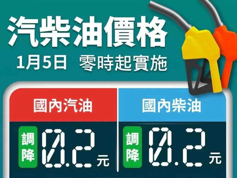 油價快訊|20260105(一)0點起|汽油降2角 柴油降2角