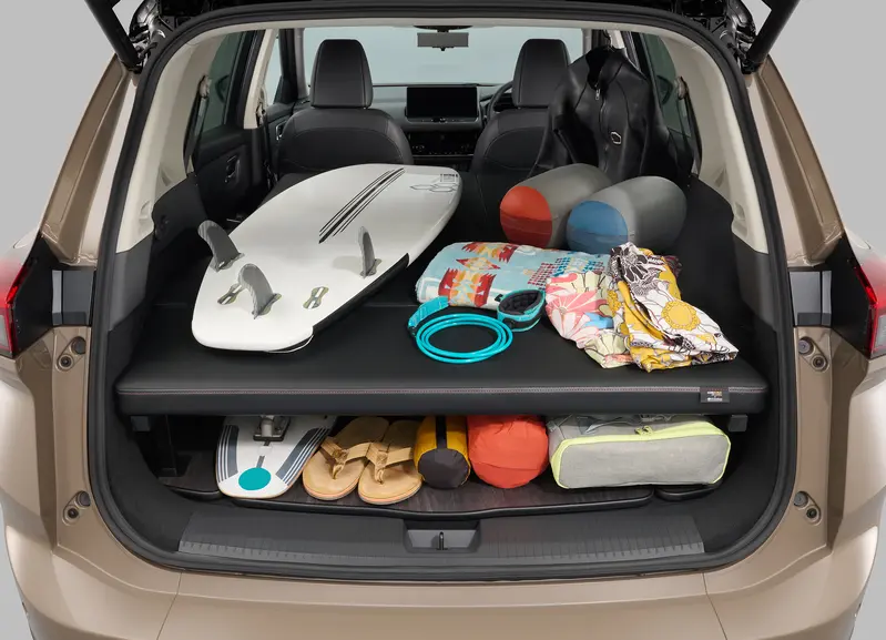這款車型的最大亮點在於其內裝機能的徹底變革。NMC開發的Multibed套件讓X-Trail轉向極致的空間運用。搭載的平整化床板組合,讓車艙在維持二排座椅機能的同時,後廂可透過專屬床板形成一個寬敞且平整的睡眠空間,即便兩位成人也能輕鬆躺平。考量到戶外活動可能帶來的濕氣與泥濘,全車座椅及床板皆採用高標準 防水透氣材質,不僅易於清潔,更提升了野營時的便利性。床板系統採模組化設計,可根據載物需求輕鬆拆卸,平衡日常通勤與週末出遊的多重身份。