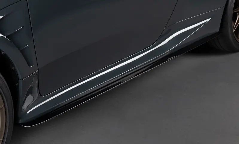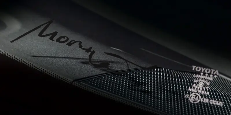外觀上,GR Yaris MORIZO RR 採用了極具辨識度的專屬車色「Gravel Khaki(碎石沙色)」,並換裝大量碳纖維競技套件,包含碳纖維引擎蓋、碳纖維大型後尾翼...等。車側則可見專屬前下擾流與側裙與消光銅色輕量化輪圈。為了強化視覺張力與功能性,水箱護罩採用鋼琴烤漆處理,內藏的黃色煞車卡鉗則是 Morizo 個人風格的點睛之筆。最引人注目的細節,莫過於前擋風玻璃上 Morizo 的親筆簽名,彰顯其獨特的身分地位。