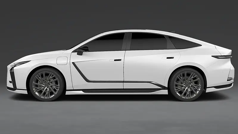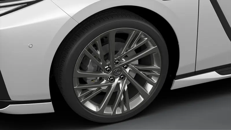 在前下擾流與車尾分流器處,導入細長且深邃的 LED 導光條,這套燈組與新世代 ES 的燈光語彙呼應,創造出一種「懸浮」在路面上的視覺效果。足下20吋輪圈設計採用多幅式不對稱結構,結合拋光與霧面黑雙色處理,在靜止時呈現出複雜的機械美感,而在行進間則能形成穩定的光環效應,改良空力表現的同時也強化運動氣息。車尾部分並未採取誇張的大尾翼,而是以一體成型的流線鴨尾,精準平衡了空氣動力與原車的紳士氣息。