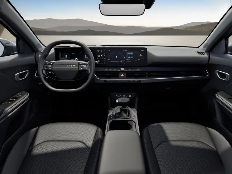 進入艙內,K4 Sportswagon 展現了 Kia 在數位化轉型上的強大實力。儀表台由一組巨幅全景顯示幕構成,整合了 12.3 吋數位儀表、5.3 吋空調控制幕以及 12.3 吋中央觸控螢幕。