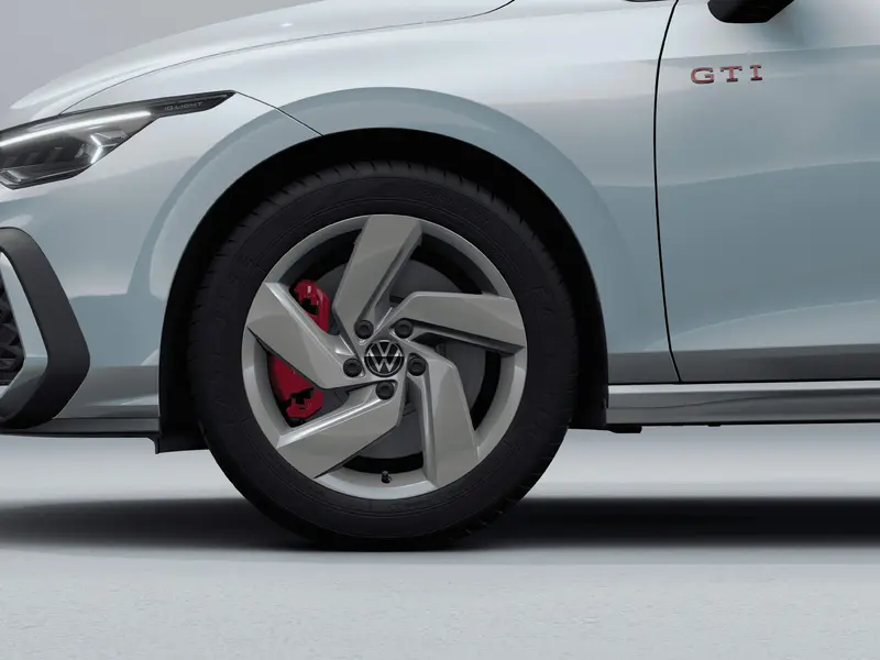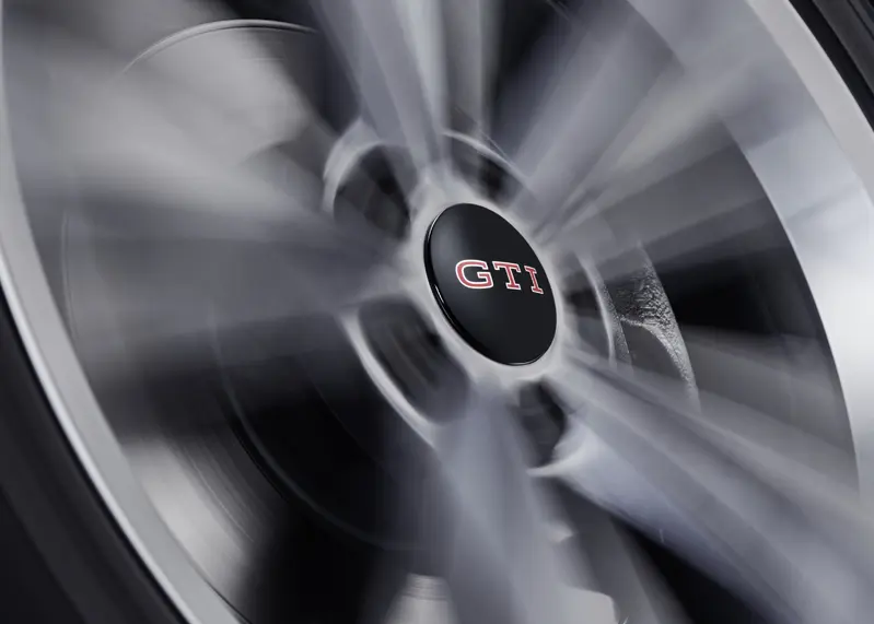 Golf GTI 冰影純粹版在設計上採取極簡與張力並存的視覺策略。最受矚目的莫過於原先需加價1萬元選配、具備高辨識度的冷冽冰澈藍專屬烤漆,此次直接列為標準配置,並大膽採用湛黑運動化車頂,營造出強烈的對比美學。此外,該特仕版全面導入 Black Style 黑化風格套件,從頭燈組、後視鏡殼到水箱護罩飾條均實施全面黑化處理,搭配標誌性的 GTI X型前霧燈與紅色煞車卡鉗,即使在靜態停駐時,依舊流露出不怒而威的鋼砲本格。鋁圈由原本的19吋改為17 吋Richmond運動化輪圈,承襲5代 Golf GTI 輪圈的設計精隨,重新詮釋經典元素,為 GTI 注入更具辨識度的動感美學,完美襯托 GTI 熱血不羈的動感姿態。
