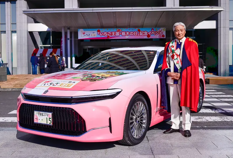 在汽車工業與地方文化深度結合的日本,地域經銷商往往扮演著推廣家鄉特色的重要角色。適逢創立 80 周年的栃木豐田(Tochigi Toyota),於今年 1 月 18 日在栃木縣廳舉行的「草莓王國・栃木之日」紀念活動中,正式揭開了其最新力作Crown Sedan草莓王國特裝彩繪車的神秘面紗。這部融合了極致奢華與在地農產意象的旗艦車款,不僅是為了慶祝經銷商的里程碑,更承載了推廣栃木縣世界級品牌草莓的重任。