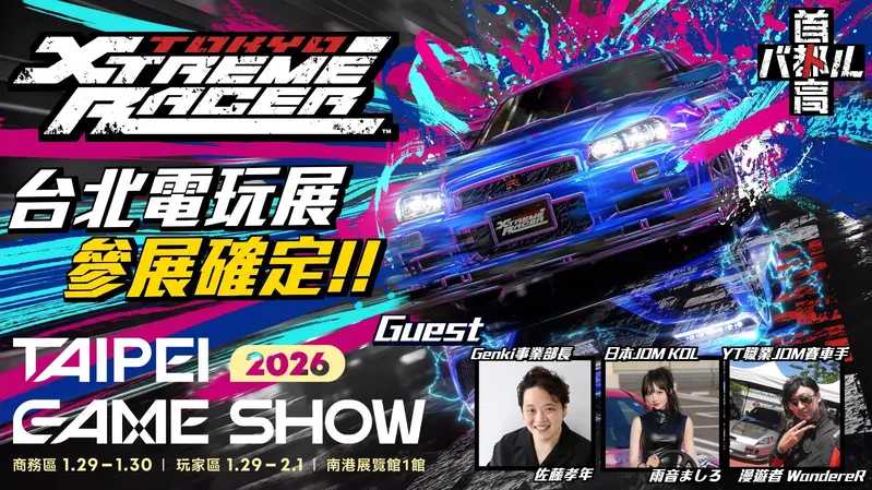 日本遊戲開發商 Genki 宣布,旗下知名競速作品 《首都高賽車(首都高バトル)》 將首次登陸台灣,參加 2026 年 1月29(四)至2月1日(日) 台北國際電玩展(Taipei Game Show 2026)。