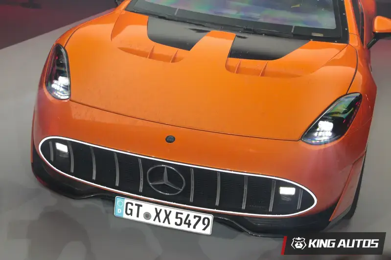 在摩天大樓林立與繁華車流的背景下,CONCEPT AMG GT XX 以其極度低伏的車身廓型與「環形發光格柵」,在信義區夜色中勾勒出極具侵略性的視覺張力。