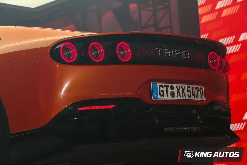 最令現場民眾驚艷的細節,莫過於車尾 MBUX Fluid Light Panel 亮起的「TAIPEI」專屬字樣,展現出品牌對台灣市場的高度重視。隨後,TAIPEI SKY TOWER 同步點亮鮮橘色的戶外視覺廣告,將這場快閃行動推向最高潮,象徵著這頭賽道猛獸已成功馴服城市街道。