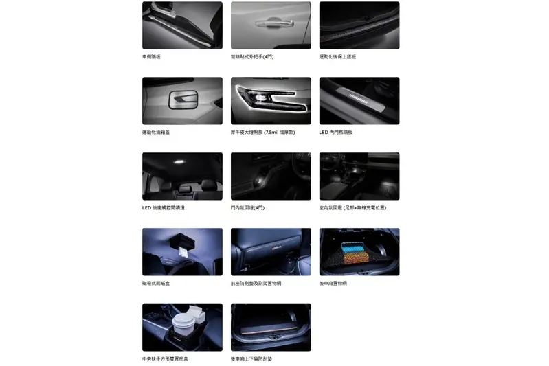 車美仕動作相當快,日本進口六代Toyota RAV4月初才剛上市,最近就推出專屬升級用品,這些用品大致可分為虎皮藥膏般的外觀貼件、強化行車安全與便利性的貼心小物,以及增添車艙歡樂氣氛的套件...等,可視需求單獨購買。