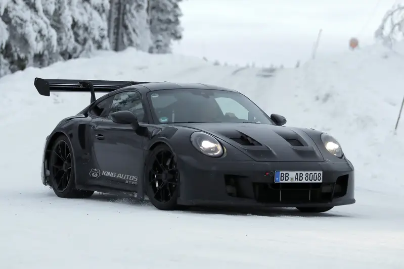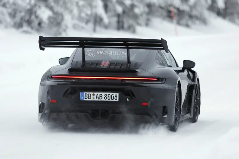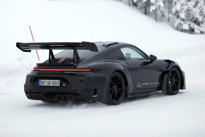 斯堪地那維亞的冰原測試場不僅考驗著車輛的極限,也往往是洩漏Porsche最高機密的源頭。近日,一輛重度偽裝的改款 992.2 GT3 RS 原型車在此現身,儘管車頭看似維持現狀,但車尾的劇烈變動,似乎暗示著渦輪增壓時代來臨了。