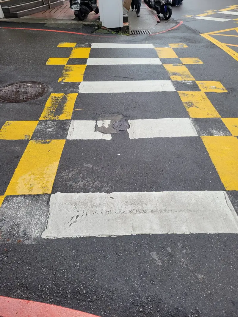 你在台北路口看到的黃色棋盤格,其實不是隨便畫上去的「裝飾」。它的正式名稱叫做「彩色標記行人穿越道線」,是台北市交通局參考新加坡與日本行人穿越道設計後,引進並逐步推廣的道路標線。設計概念很單純,就是用 40 公分的黃色方格,搭配黃白高對比色彩,在視覺上製造「不舒服感」,提醒駕駛這裡不能照原本速度通過,前方有減速丘、也有行人。