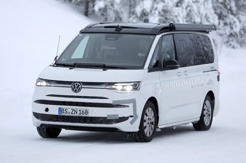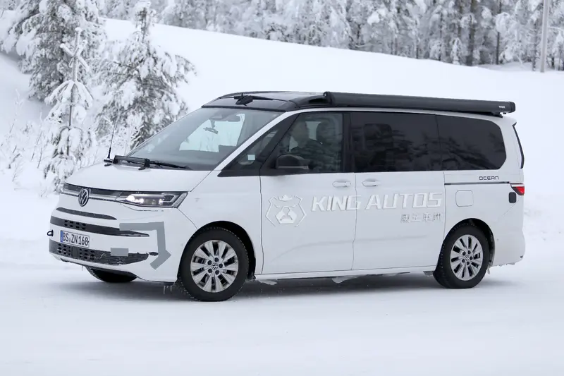 自 2021 年問世以來,Volkswagen T7 Multivan 以 MQB Evo 模組化底盤為基礎,徹底顛覆了過往商旅車的架構。如今,隨著產品週期步入中期,以及更為嚴苛的歐盟七期排放法規逼近,原廠已著手進行小改款工程。近日,在瑞典極地測試場捕獲了一輛露營車規格的 T7 測試車,預告了這小改款將於 2026 下半年以 2027 年式車型登場。