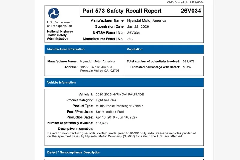 Hyundai官方表示目前正積極開發修復方案,並預計於2026年3月23日開始正式通知受影響車主。目前尚未有關於此缺陷導致的傷亡報告,但由於NHTSA估計受影響車輛的缺陷機率高達100%,建議受影響車主在收到通知後儘速回廠進行檢查與修正。