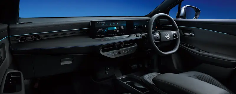 進入車內,AUTECH全車座椅採用Black TailorFit高質感人造皮革,並在椅背刺上醒目的「AUTECH」標誌,搭配整車統一的藍色手工縫線。皮質包裹的方向盤同樣採用藍色縫線,不僅止滑性更好,視覺上的精品感也大幅提升。此外,包含儀表板、門板與中央扶手,均換上了與外觀對應的運動化飾板,徹底擺脫平價車款常有的塑膠感。考量到日本買家的冬天用車需求,Leaf AUTECH特別將多項實用配備改為標配,包含後座加熱座椅、方向盤加熱功能,同時也新增電池加熱系統與雨刷解凍裝置,確保在極端氣候下電能表現依然穩定。