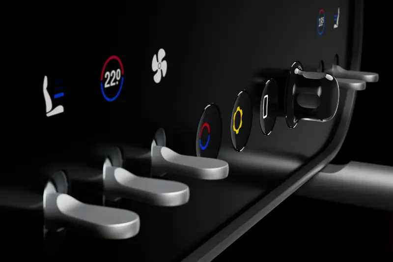 在Ferrari Luce的願景中,車艙飾版有著雙重性格。在車輛非運作的靜止狀態下,座艙呈現出優雅且純粹的質感;而當車輛啟動時,原本平整的表面將轉變為資訊傳遞的媒介。這種對材質與背光技術的深度整合,展現Ferrari在追求極致性能之餘,對於前瞻性奢華與科技工藝的獨到見解。
