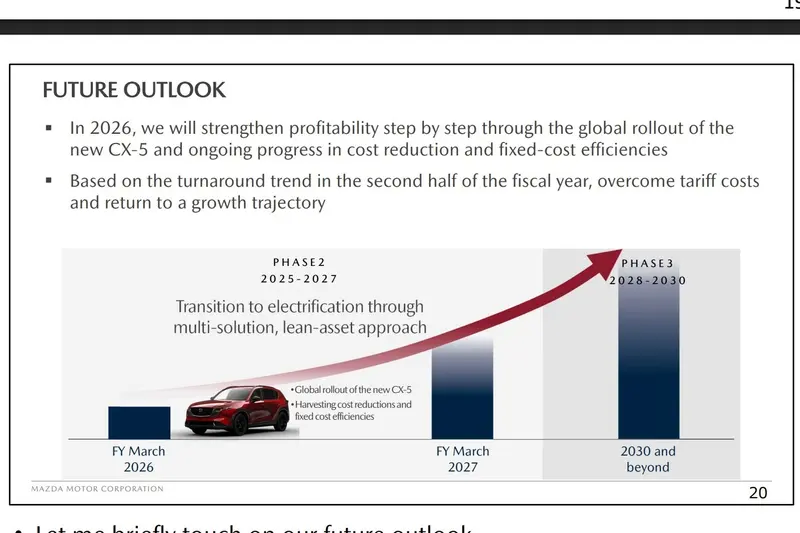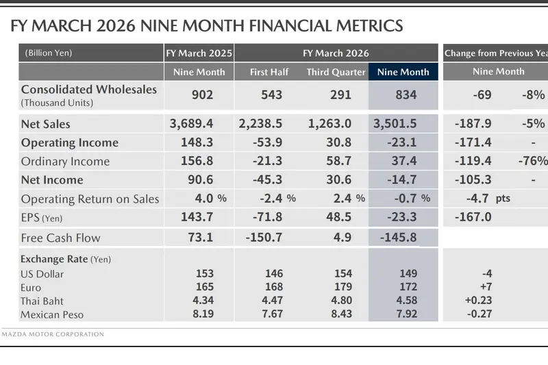 Mazda於2026年2月10日正式公布2026財年第三季(即2025年10到12月)財務結果。數據顯示,Mazda在經歷上半年高額關稅挑戰後,已於第三季重返盈利軌道,並將後續成長動能寄託於品牌全球銷量支柱全新大改款CX-5的全面投產與市場交付。